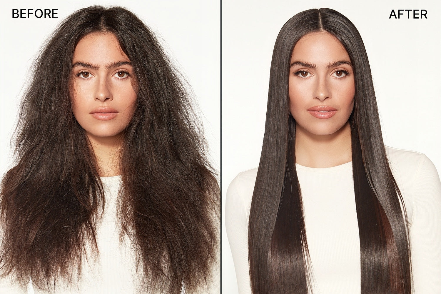1) Smooths down outer cuticle layer and compresses each strand into a sleek, silky, supple shape